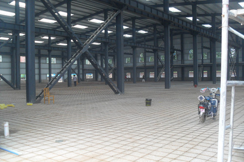 2、汽车学院教学厂房地坪施工进行中﹙见下图﹚;