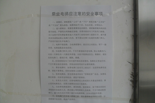 (1)对已安装8部电梯分别进行了检修、调试,每部电梯里面张贴了“电梯使用标志”和“电梯使用安全须知”,每部电梯外面张贴了“乘坐电梯应注意的安全事项”,现8部电梯正常运行中;另外进行了餐厅电梯门套工程和电梯周边扫尾维修项目的立项申请书审核、资料汇总、立项书起草及签订手续办理工作(见下图);