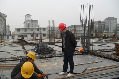 3月20日下午,党委副书记储建新在办公室主任石磊、办公室副主任贾晨阳及基建处副处长王开岭的陪同下到行政办公楼施工现场察看指导工作。