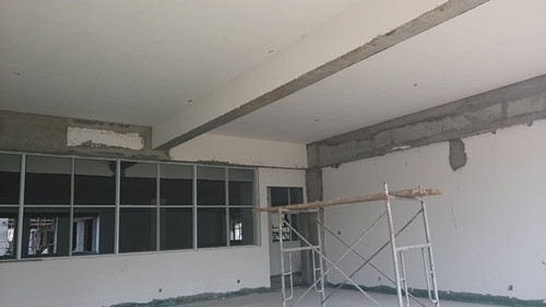 (二)机电学院内墙窗正在安装,内墙腻子正在粉刷第二遍(见下图)