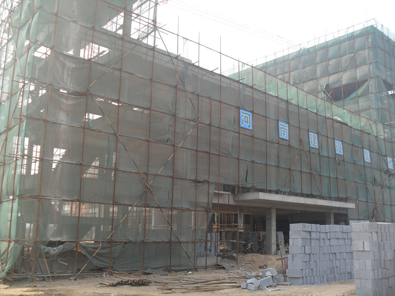 化工学院实训楼正在进行屋面找平,二次结构基本完成,北立面外墙粉刷进行中,蘑菇石加工准备进行。