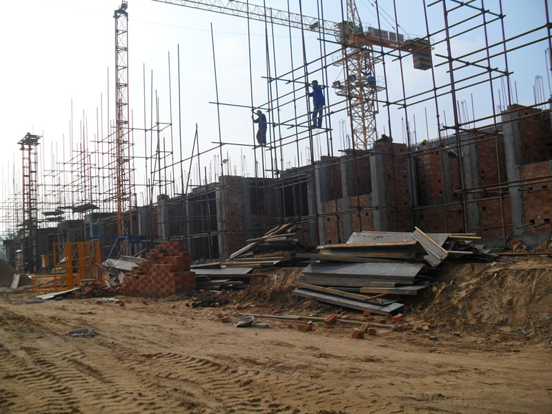 由孙李唐村承建的4#学生公寓三层半墙体完成。