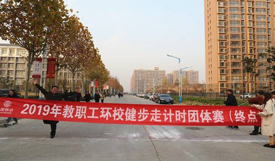 我处全体同志于12月12日下午,参加我校2019年教职工健步走计时团体赛。校领导万是明、成芳、马林强到场为各参赛队加油助威,并分别在赛道起点发令,副校长李治亲自参加了比赛。级过激烈拼搏,机关第2代表队最终获得并列第7名的好成绩。