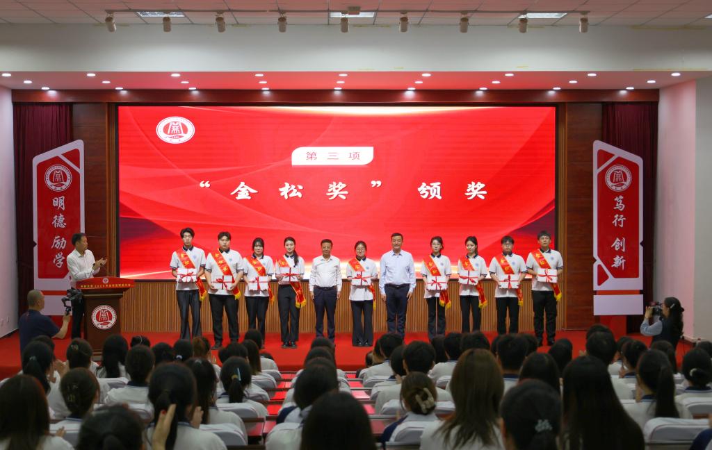 会上,副校长李治宣读表彰决定。与会领导分别为金松模范教师代表、金松模范学生及金松奖学金获得者颁奖。教务处处长王茜、土木建筑工程学院学生张启月分别作为教师与学生代表发表感言。