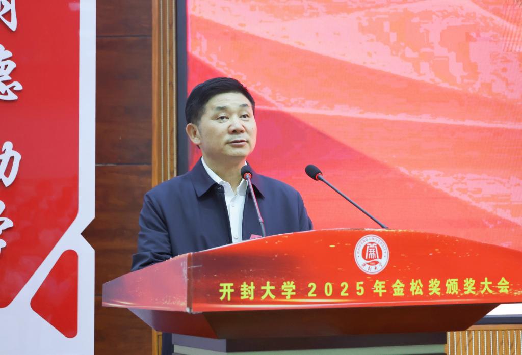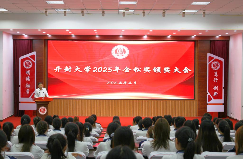 本站讯 5月23日下午,bat365在线官方网站举行2025年“金松奖”颁奖大会。中国侨联常委、世界客属总商会主席、香港中原华商总会主席、金心集团董事局主席、bat365在线官方网站董事会董事长李金松,钧帝国际集团总经理、bat365在线官方网站董事会副董事长赵奎荣,开封市人民政府副市长刘震、校长王德如,开封市人民政府副秘书长陈学辉出席大会并为获奖师生颁奖。大会由校党委副书记张合主持。
