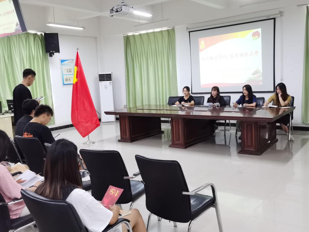 为深入贯彻习近平总书记关于制止餐饮浪费行为重要指示精神,教育引导广大青年学生养成健康饮食习惯,9月7日中午,财政经济学院学生党支部在在学院党员活动室举办以“厉行勤俭节约,杜绝铺张浪费”为主题的“5+N”主题党日活动。学生党支部全体党员参加,会议由学生党支部书记薛成主持。