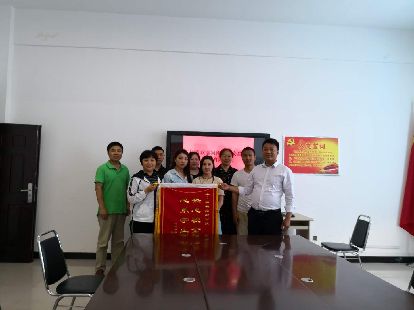 5月9日上午,河南省国安昌达科技有限公司向财政经济学院赠送锦旗“热心校企合作,心系学生未来”。学院党总支书记王茜、院长李国莉、副院长彭旭、团总支书记王志涛接待了樊总、张总一行。