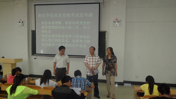 5月13日下午,学校党委副书记储建新同志在财经学院党总支书记李国莉老师的陪同下,认真检查了学院第47期业余党校的考试组织情况。