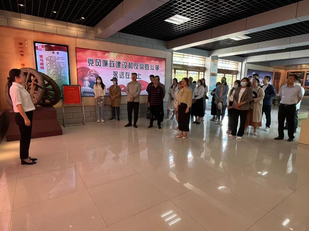 在廉政教育基地活动现场,全体教师观看展厅廉政故事,聆听反腐倡廉历史、党员模范事迹等讲解。讲解员以党的纪律、作风等基本概念入手,深入阐述党的纪律建设的重要性和必要性,并结合具体案例,分析了违反党纪的严重后果。最后全体党员教师面向党旗重温入党誓词。