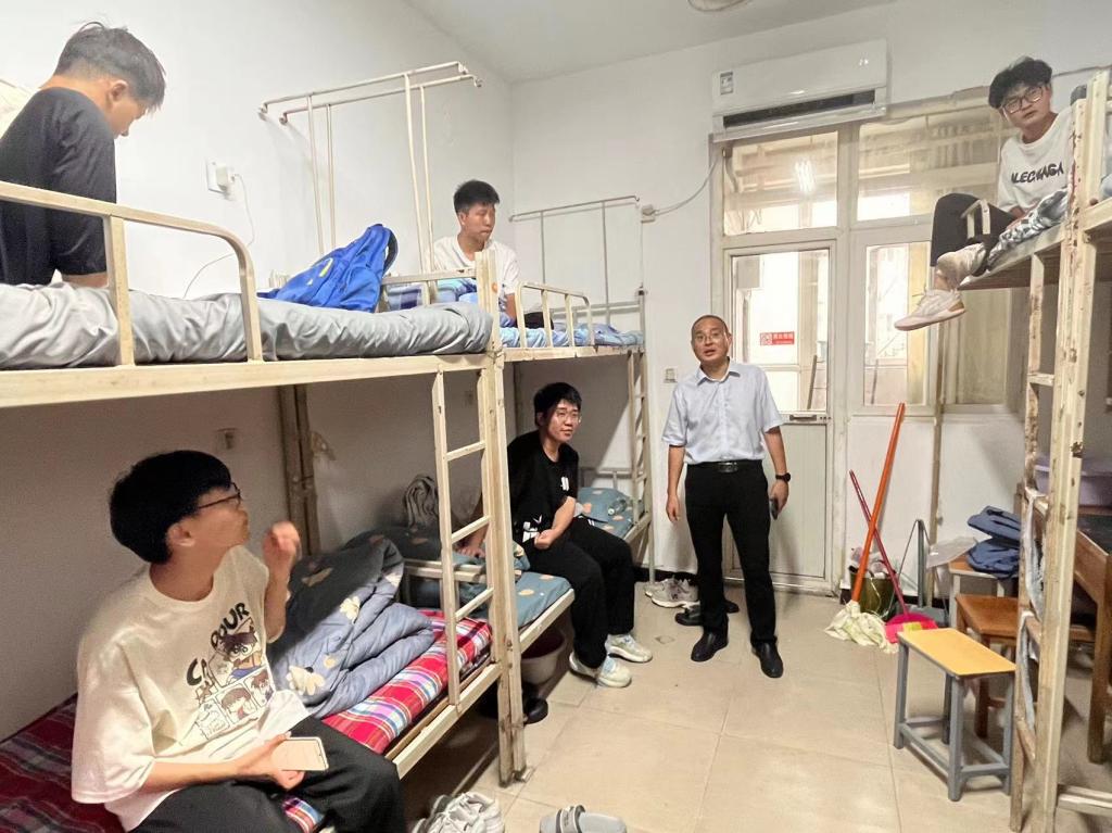 走访中,郝喜才与韩艳霞一行逐一与新生们亲切交流,仔细询问了新生们的入学报到情况、住宿条件是否满意、是否适应新环境等。他们不仅分享了学院的辉煌成就与特色优势,还耐心解答了新生们关于专业学习、校园生活等方面的疑问,让新生们对即将开启的学习生活有了更加清晰的认识和规划。