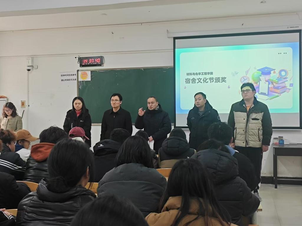 12月12日,在3号楼301教室,伴随“宿舍文化节表彰大会”的举行,“材料与化学工程学院第九届宿舍文化节”活动落下帷幕。学院党总支书记郝喜才、党总支副书记武志远、全体辅导员、获奖学生和寝室代表参加表彰大会。