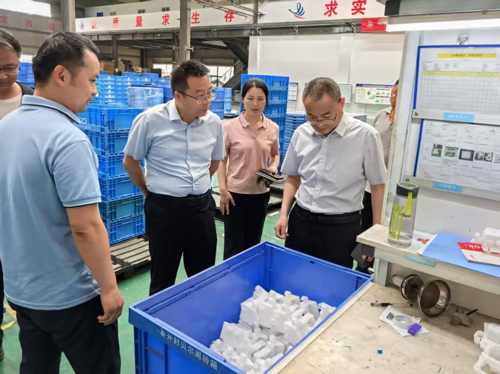 5 月 27 日上午,材料与化学工程学院党总支书记郝喜才、副院长王丽一行 4 人,前往开封市贝尔汽车部件有限公司开展访企拓岗活动,并就科研合作进行深入探讨。开封市科学院副院长刘圣亚、开封市贝尔汽车部件有限公司领导张金锐携公司技术骨干热情接待,双方进行了友好且富有成效的交流。