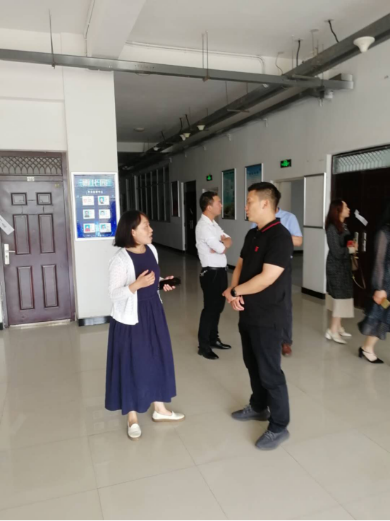闫俊院长对胡总监一行来访交流合作表示欢迎,带领胡总监一行参观我校大学生创新创业孵化园,并简要介绍了创新创业学院和孵化园近况。她表示开封·中关村智酷是双创工作的开创者和先行者,在双创方面有着丰富的经验和资源,期望在创新创业方面能够相互开展合作。