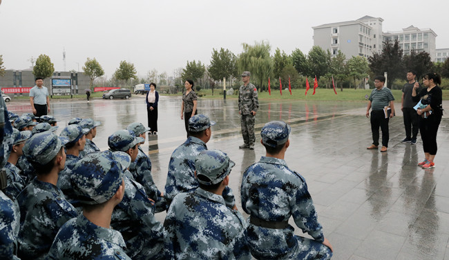 校领导冒雨慰问2019级新生和军训教官