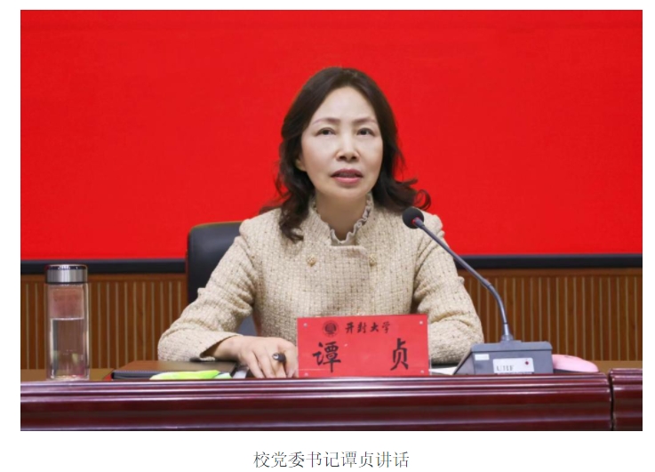 谭贞发表讲话,对过去一年学校取得的成绩表示肯定,向领导班子、干部队伍、全校师生的辛勤付出表示衷心的感谢。她从7个方面部署寒假工作:一是扎实推动《bat365在线官方网站推动高质量发展行动方案(试行)》落地见效。各单位各部门要认真学习方案,并提交建议和意见,要通过多次从上而下、从下而上的研究,边实践边探索边完善方案,将正式出台的《行动方案》作为学校未来3至5年的基本工作遵循。二是专业优化调整,二级学院优化整合。要建立专业动态调整机制,围绕新文科、新工科、新商科、新医科、新农科,围绕新兴的产业、未来技术设置专业。要与开封市制造立市、文旅强市等重点工作相结合,要请专家论证,把握以群建院的原则,对学院、专业进行整合,激发二级学院的潜力。三是文化建设要初见成效。大学文化是学校的灵魂,优秀的大学文化和向上的大学精神是学校永远的竞争力。假期里要广泛拓展办学资源,积极联系校友,争取社会捐赠,打造“净、美、亮、特”的院部文化氛围。学院文化营造方案要突出专业特色,简洁大气,方案上交学校审核后施工,力争在下学期树几个标杆学院。四是科学谋划好明年的工作。科学谋划是做大事、做成事的前提,是不走弯路、不留遗憾的必要条件,要立足现实、着眼长远。要认真学习相关政策,如《关于深化现代职业教育体系建设改革的意见》《国家职业教育改革实施方案》;要在对标对表上下功夫,学校找标杆,每个学院每个专业也要找标杆,对照标杆找差距,复制借鉴标杆的经验,努力缩小差距;要以政策导向、目标导向、问题导向、结果导向、亮点导向作为谋划工作的5个原则,以补短板、创特色、求突破作为工作总要求。新学期开学,学校将召开谋划新学期工作汇报会。五是制定科学的目标考核评价体系。要定性与定量相结合,侧重于定量,制定学院、教辅、党务、行政四个标准,按照得分来评。假期制定新的考核评价体系,从2024年开始使用。六是严格落实值班制度。越是节假日,越不能懈怠,要以时时放心不下的责任感做好值班值守工作,确保全校教职员工过一个欢乐喜庆、安定祥和的春节。七是集体廉政谈话。为了防范于未然、保护干部,要加强廉政教育。领导干部要带头遵守,自觉做到遵规守纪,自觉做到务实清廉,打造风清气正的政治生态,营造干事创业的氛围,推动党风廉政建设上新的台阶。