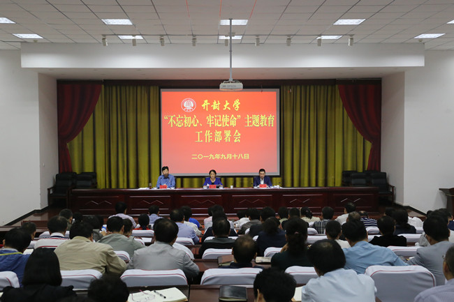 9月18日,我校在行政楼一楼会议厅召开“不忘初心、牢记使命”主题教育工作部署会,学习贯彻中央、省委、市委有关会议精神,安排部署我校“不忘初心、牢记使命”主题教育工作。开封市委第十巡回指导组组长张冕、成员牛丹洁,我校校级领导班子成员、纪委委员、全校中层正职干部、各党总支副书记、各院部党政办主任、党务部门全体人员参加了会议。会议由校党委副书记、校长宋志敏主持。