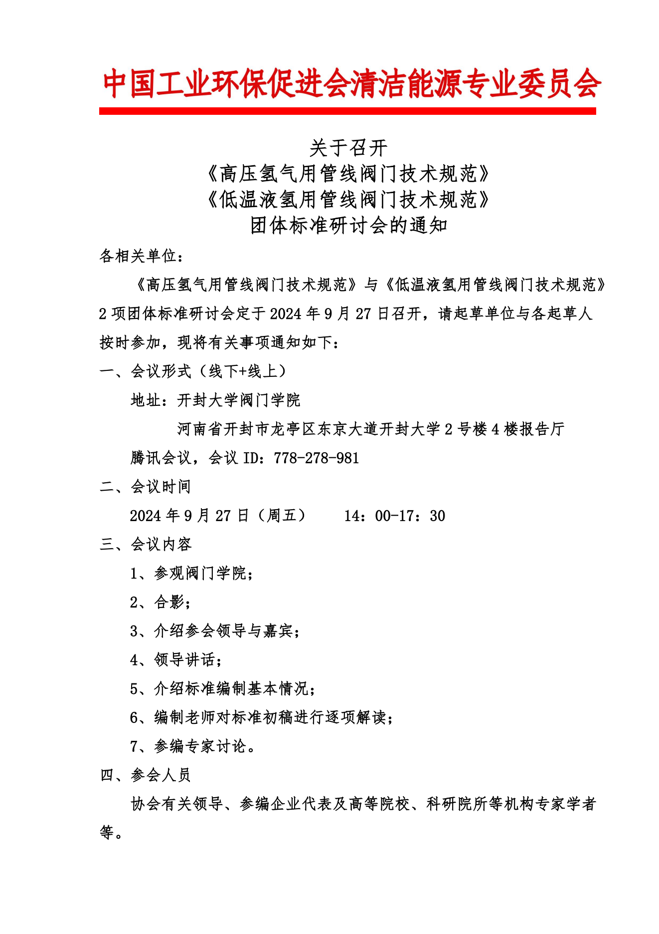 关于召开 《高压氢气用管线阀门技术规范》 《低温液氢用管线阀门技术规范》 团体标准研讨会的通知