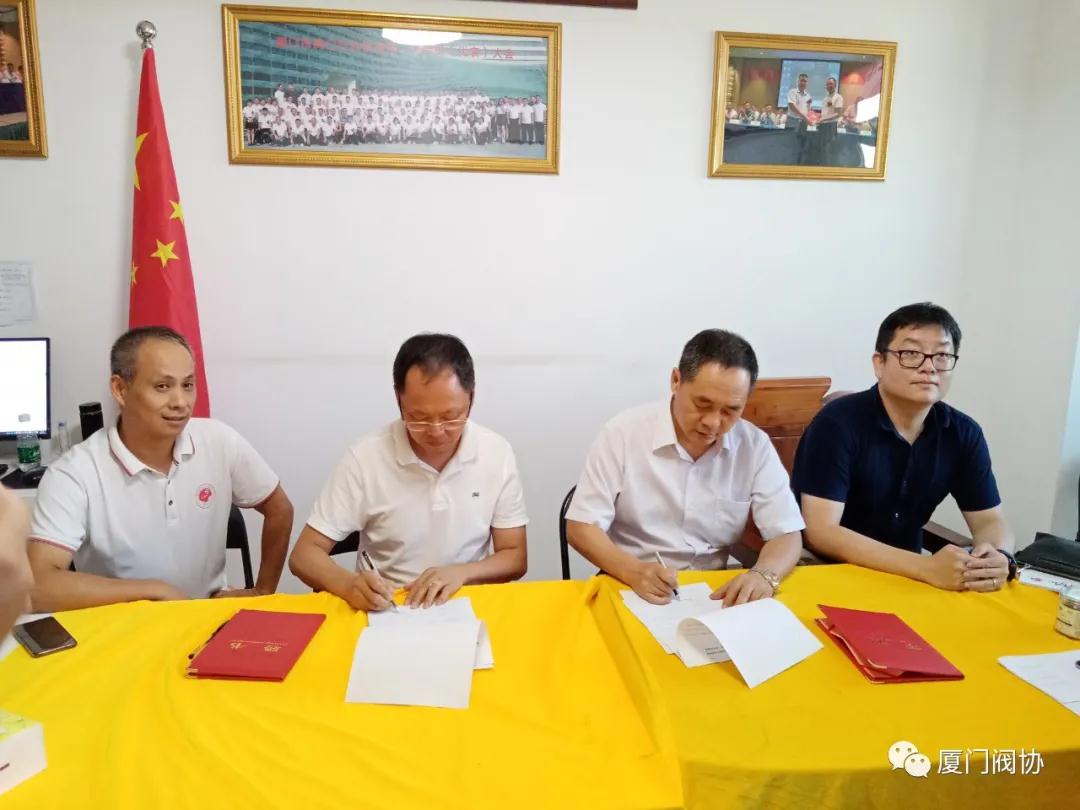 2020年7月11日,由厦门阀门行业协会会长朱国良牵头,bat365在线官方网站阀门学院王晓明副院长、吕玉湖副院长,技术研发部主任徐灵峰博士在厦门阀协总部签订合作协议,共建“厦门泵阀培训中心”。