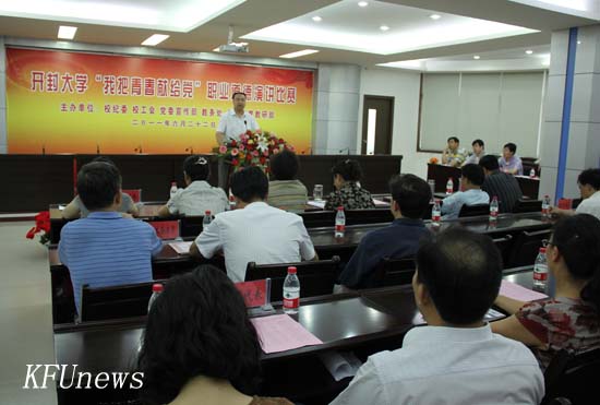 6月22日下午,我校在行政楼二楼会议厅举办“我把青春献给党”职业道德演讲比赛活动。全校各分工会共有22名教职工选手参加了演讲比赛。校领导万是明、赵辉、范金梅、何世玲、耿广利、成芳,全体工会委员,各分工会主席,教职工代表聆听了全场演讲比赛。