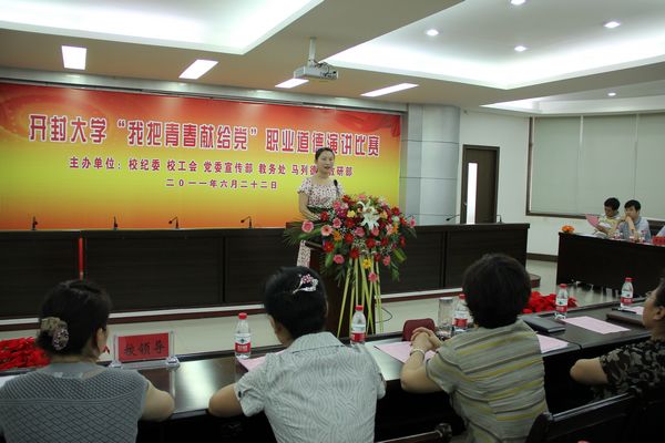 本次比赛是我校迎接建党90周年庆祝活动中的一项重要活动,活动紧紧围绕职业道德教育这一主题,弘扬职业精神、恪守职业道德,通过开展活动进一步提高广大教职工为教育事业服务,进而深入持久地开展好职业道德教育活动。22名选手依据教职工的职业道德,紧密联系身边的人和事,用动情的话语讲述一个个动人的故事,展示了教师爱党爱岗、 潜心育人、无私奉献、昂扬向上的精神风貌。选手们动听的语言、激扬的情感、美好的形象深深吸引住了在座的每一位评委和教职工,震撼着大家的心灵。