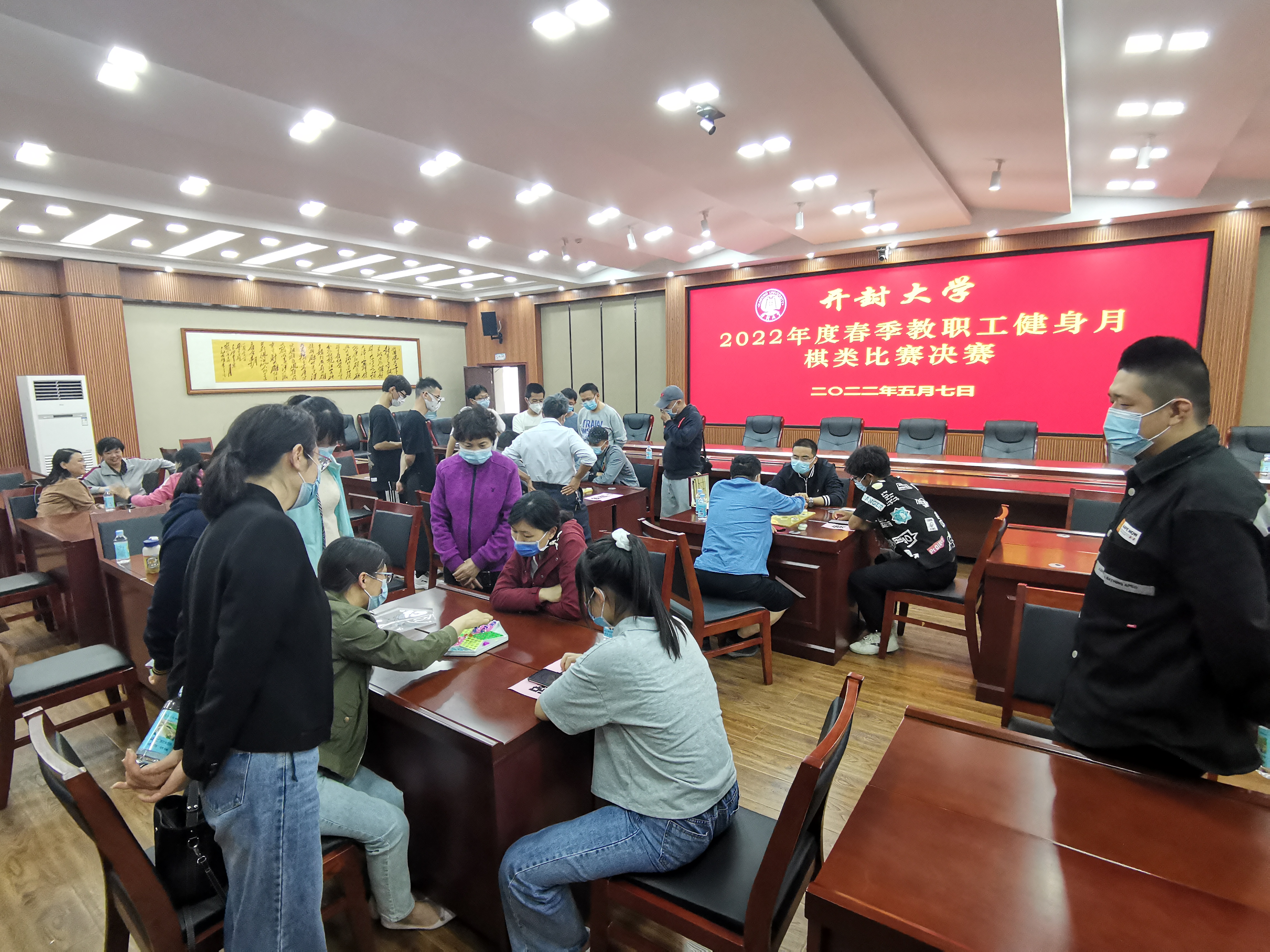 为弘扬传统文化,丰富教职工的课余文化生活,喜迎二十大胜利召开,5月7日,我校工会在行政楼第二会议厅举办2022年度春季教职工健身月棋类比赛。