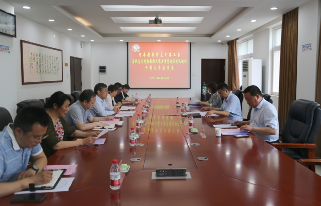 调研汇报会在行政楼第三会议室进行,宋晓炜代表学校对张学勇一行的到来表示热烈欢迎,对省教科文卫体工会、开封市总工会给予我校工会工作的大力支持表示感谢,并介绍了学校基本情况和工会特色工作。成芳代表学校进行了教职工能力素质建设情况汇报。