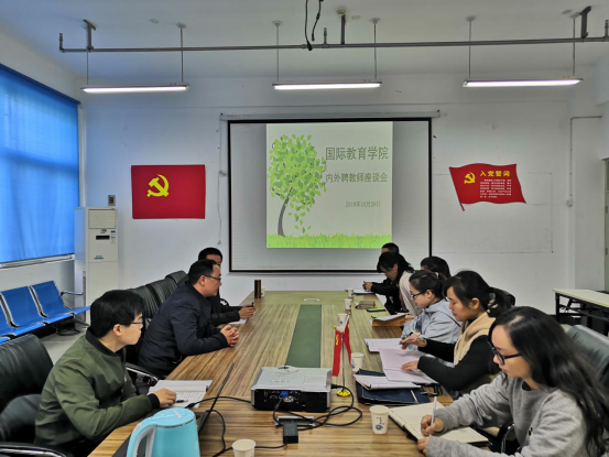 1029日下午,国际教育学院在17号楼114会议室召开内外聘教师座谈会。院长袁长征、副院长蒋大山、教学秘书王赛以及本学期的内外聘教师参加了此次座谈会。