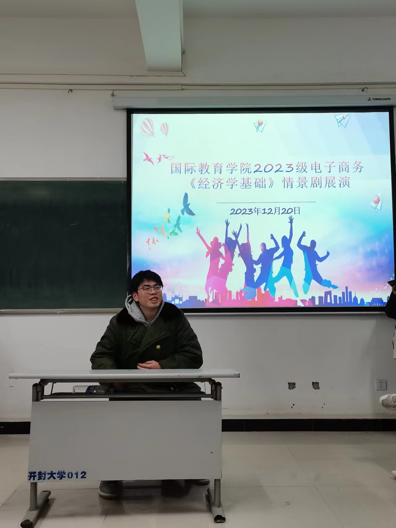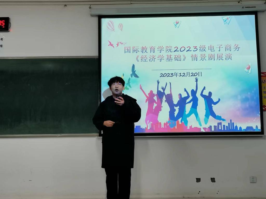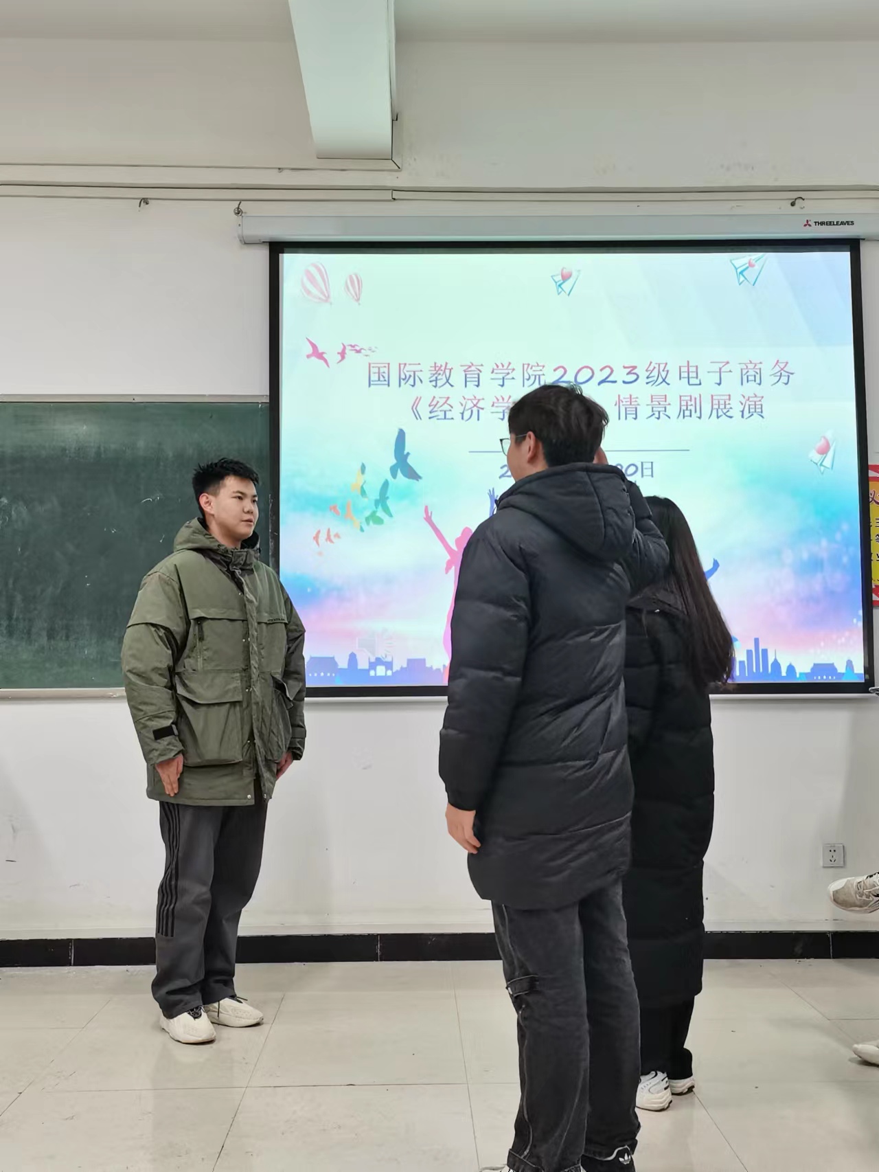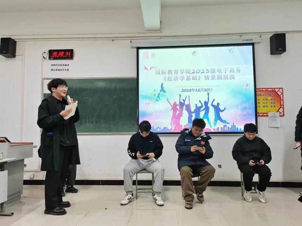 为丰富课堂教学形式,激发学生专业学习兴趣,12月22日,国际教育学院2023级电子商务专业《经济学基础》课程采用了“情景剧展演”这一创新教学方法开展课堂教学,课堂由授课老师李充组织。