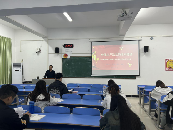 2024年4月24日中午1点,副校长李治深入国际教育学院在15号楼219教室为学院第69期积极分子及第20期发展对象上党课,深度解读《关于新形势下党内政治生活的若干准则》。此次授课,李治以细致入微的解析和透彻的阐述,引领大家深入理解并严格遵循党内政治生活的各项准则。