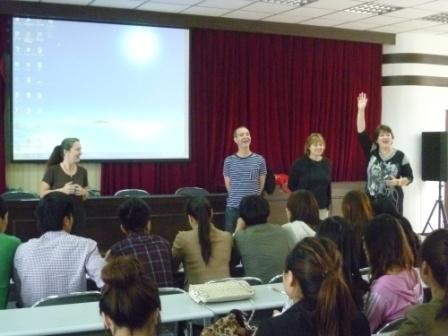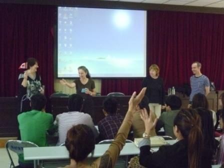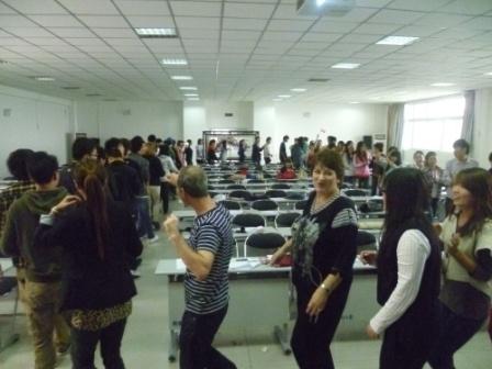 10月22日上午,国际教育学院在五楼大厅举办英语角特别活动——周末英语广场。本次活动以“快乐学习”为主题,我院外教组织09级、10级部分学生开展了丰富多彩的英语课外活动,我院部分教师也参与其中,气氛热烈。