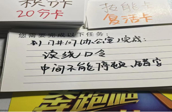在活动中同学们秉持着友谊第一、比赛第二的原则,制定作战策略,采取结盟、围堵等方式进行角逐。每个人都斗志昂扬,浑身充满了力量,各小组成员小心翼翼,通力合作“伏击”敌人,时而如孩童般欢脱,时而又警惕万分。不管是被“秒撕”,还是顽强存活,无数个精彩场面让我们见证了大家敏捷的身手,所有人在愉悦的氛围中得到了精神释放。活动最后,大家在名牌上尽情书写自己的创意,收获了一段值得留存的美好回忆。