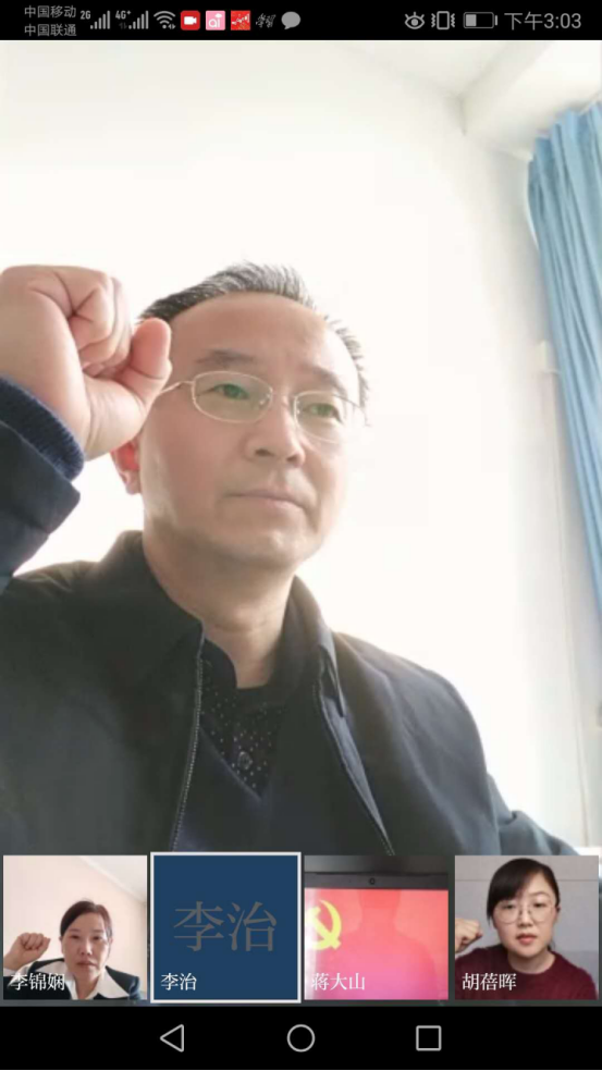 首先由蒋大山同志领誓,全体党员重温了入党誓词,然后观看了视频《党章青年说》。随后,党总支书记陈力同志带领全体党员教师学习了习近平总书记《在中央政治局常委会会议研究应对新型冠状病毒肺炎疫情工作时的讲话》精神及河南省教育厅厅长郑邦山在河南省新冠肺炎疫情防控专题现场新闻发布会上的讲话,要求全体党员教师要发挥先锋模范作用,坚定信心,打赢疫情防控狙击战。党总支副书记赵骅同志带领大家学习了开封市教育局相关会议和文件精神。袁长征院长带领研讨即将开展的网络教学工作及毕业生实习论文指导工作中的主要问题,要求党员教师将上级文件精神融入实际工作之中,充分利用各种在线开放课程平台保证教学质量。之后,全体党员填写了电子版的党员积分表并交纳党费。