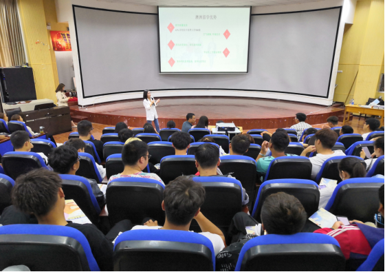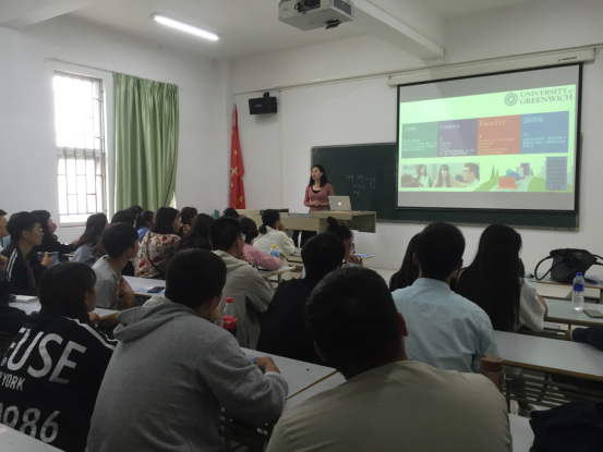 我院的会计和电子商务专业是与澳大利亚堪培拉大学合作举办,国际金融和物流管理专业是与英国格林威治大学联合开设。首先由两国合作院校校方代表对同学们做精彩讲座,针对中外合作专业的教学模式和特点进行了介绍,同时详细说明了学生将来毕业出国发展路径及项目优势,并鼓励同学们抓住目前行业发展机遇,学好专业知识,争做行业精英。