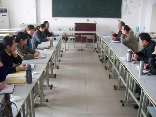 2013年3月28日在国际教育学院304教室,来自加拿大的两位外教EDNER、ZAVE与国际教育学院专业教师及助教老师们探讨了关于教学方法以及助教过程中的问题,参加讨论的还有国际教育学院院长李治博士、副院长袁长征、教研室主任黄艺琴。经过大家热烈的讨论,全体教师一致认为培养学生的兴趣和自信心对于学习专业课知识非常重要,在今后的教学过程中以案例分析为主线进行专业课教学,在中外方教师的共同努力下,培养具有专业特色的“国教人”。