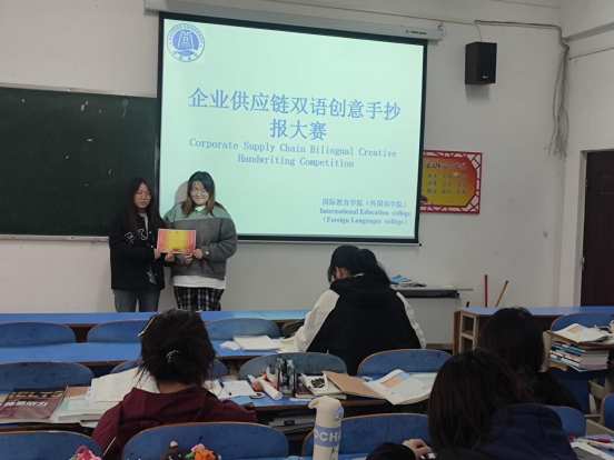 为进一步增强学生对著名企业供应链架构的了解,提高学生的双语表达能力和创新思维,培养学生的团队合作精神,丰富校园文化生活。2024年10月16日,国际教育学院(外国语学院)任课教师李俊霞组织23物流班于15号教学楼207教室成功举办了企业供应链架构双语手抄报大赛。经过评委们认真细致地审阅、讨论以及打分,最终从众多优秀的参赛作品中评选出了各个奖项,一等奖(1组)二等奖(三组)三等奖(6组)。