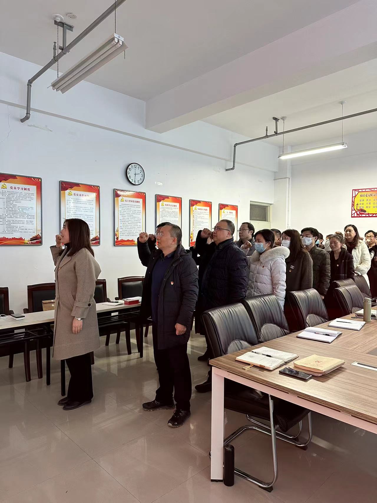 首先是重温入党誓词,由薄利娜同志带领全体党员重温入党誓词。其次是诵读经典,由院党总支书记陈力同志带领学习《习近平在学习贯彻党的二十大精神研讨班开班式上的重要讲话》精神;然后,由薄利娜同志带领学习党的二十大文件汇编相关精神并谈体会。会上,支部党员集中交纳当月党费,并公示了1月份党员积分情况。作为“附加动作”,由黄艺琴同志带领学习河南省高等职业教育教学能力大赛文件精神。