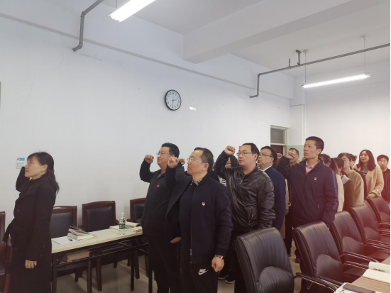 同志领誓,全体党员在党旗下重温入党誓词。随后,由陈力同志带领学习《中国共产党统一战线工作条例》。由袁长征同志带领学习《论中国共产党历史》第