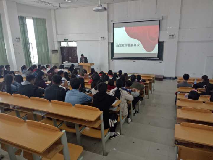 首先外国语学院党支部梁波副书记发表了讲话,详细讲解了党的十九大党章修改的内容,我国社会现有的主要矛盾,两个一百年以及四个自信。随后,团支部肖丽敏书记表示,不忘初心、牢记使命是大会强调的重要主题,党的十九大报告将其解读为为中国人民谋幸福、为中华民族谋复兴。最后,在入党积极分子发言交流中,均表示党的十九大报告内容高瞻远瞩、振奋人心,为新时期中国特色社会主义事业建设提供指路明灯。