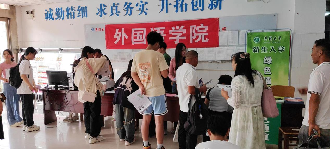 新生报到期间外国语学院各位领导老师们亲切询问新生们的情况,并为新生家长一一解答问题新生们纷纷表示,报到过程中感受到了外国语学院大家庭的温暖以及学长学姐们的热情,对即将开启的大学生活充满了期待。