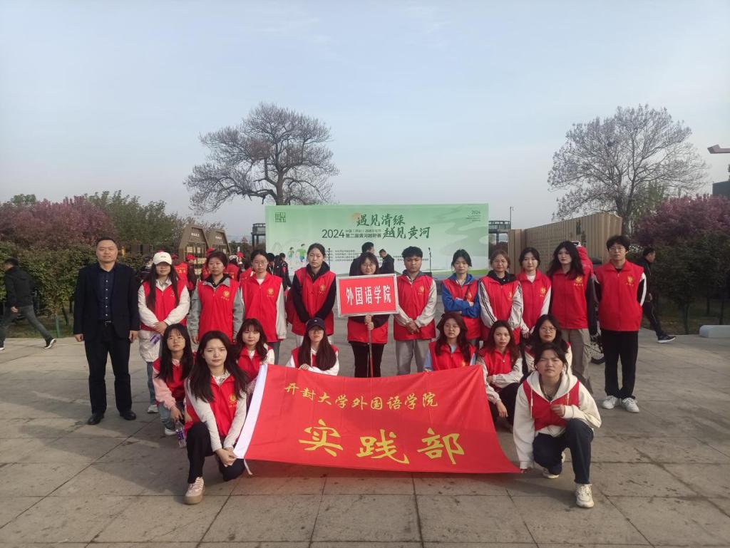 2024年4月7日上午,外国语学院党总支副书记秦新峰带领20名学生志愿者到示范区黑岗口黄河观景台参加“2024年遇见青绿 越见黄河中国(开封)清明文化节第二届黄河越野赛”志愿者服务活动。