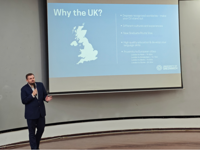 2025年10月13日下午,英国格林威治大学在5#606教室为我校23级物流管理专业学生举办了一场别开生面的留学项目宣讲会。本次宣讲会以“英伦下午茶”为主题,营造出浓厚的英式文化氛围,旨在向学生介绍该校的留学项目...