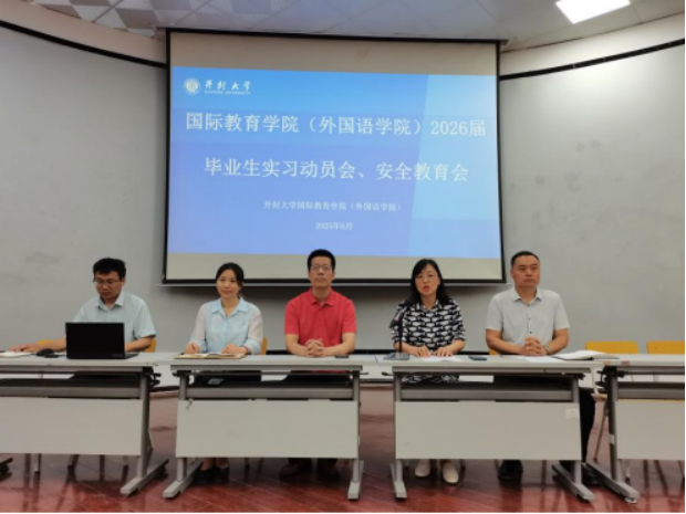 In order to further promote the internship work of graduates and enhance their safety awareness, the International Education (Foreign Languages) College of Kaifeng University held a grand 2026 ordinary major graduates' internship mobilization and safety education conference in the South 5 Lecture Hall on the afternoon of June 12th. The college's leadership team, the directors of the Business English and Applied English teaching and research offices, and the counselors of the graduating classes attended the meeting. All the graduates of the Business English and Applied English majors participated in the conference, which was presided over by Comrade Jiang Dashan, the college's dean.