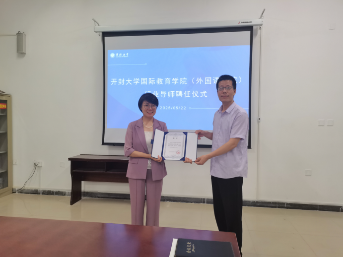 On May 22, 2025, representatives from three companies, including Henan Yuanjun Technology Internet Technology Co., Ltd., Henan Jingchen Culture Media Co., Ltd., and Henan Hengyang Environmental Protection Technology Co., Ltd., visited International Education ( Foreign Languages) College of Kaifeng University to carry out recruitment lectures and internship opportunities, and participated in the seminar of the Steering Committee for the Construction of Modern Logistics Management Majors. Corporate representatives Chen Xiaonan, Li Yiheng, Li Xiaolei and Ji Zhaohua respectively introduced the development history, core business, corporate culture and welfare system of their respective companies. During the interactive session, they gave detailed answers to the career development issues that students are concerned about. In addition, corporate representatives also had in-depth exchanges with college teachers on issues such as talent training, curriculum setting and practical teaching, and put forward constructive opinions. Jiang Dashan, dean of International Education ( Foreign Languages) College, Kaifeng University, Huang Yiqin, vice dean of teaching, and Li Junxia, director of the teaching and research department, awarded industry mentor appointment certificates to representatives of the three companies. This visit not only provides students with employment and internship opportunities, but also strengthens school-enterprise cooperation, helps students achieve high-quality employment and provides outstanding talents to the modern logistics industry.