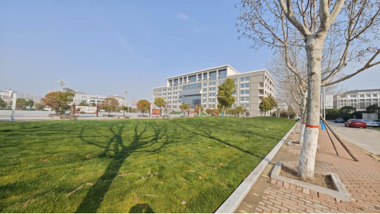 17号楼(京东乡村振兴产业学院)周边亦是旧貌换新颜,铺种果岭草草坪,大大提升了周边景观效果。