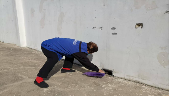 1、清理教学楼天面杂草、砖石;