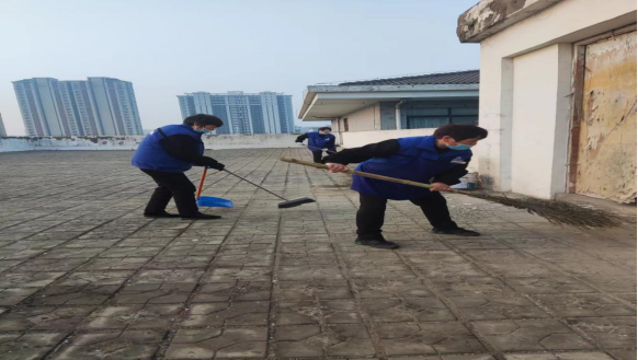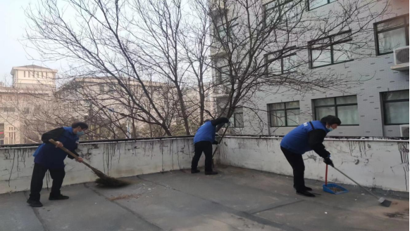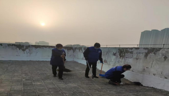 后勤卫健办开展教学楼天台卫生清理工作