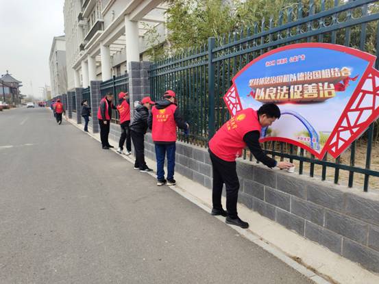 初春的天气,虽然还有些许寒意,但寒风挡不住党员们不怕苦、不怕脏的干劲儿,同志们认真擦拭沾满灰尘的学校围墙栏杆和宣传广告牌。经过了将近两个小时的劳动,学校南大门东西两侧围墙栏杆清洁靓丽、焕然一新,看着满是尘土的双手,大家露出开心的微笑。