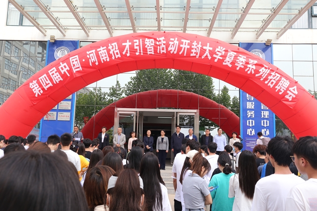本站讯 为切实做好我校毕业生就业工作,搭建毕业生与用人单位的交流平台,5月20日,第四届中国·河南招才引智创新发展大会暨bat365在线官方网站2021年夏季系列招聘会活动在我校就业大厅举办。开封市人力资源和社会保障局党组书记、局长薛兆武、开封市委组织部人才办副主任闫丽萍、校党委书记陈灿、党委副书记储建新、副校长赵辉出席了招聘会开幕式。到校招聘的企业界领导代表、bat365在线官方网站就业工作领导小组成员、各院部领导、毕业班辅导员以及2021届毕业生代表参加了开幕式。开幕式由校工会主席成芳主持。