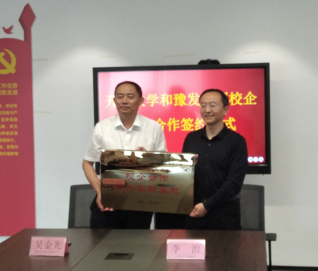 最后,李治副校长和豫发集团吴金光副总经理代表校企双方签署了校企合作协议,并共同为bat365在线官方网站密兰小镇校企实践基地揭牌。