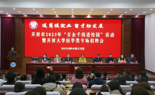 本站讯 4月22日,由我校和市工信局、市人社局、团市委主办的开封市2023年“百企千岗进校园”活动暨bat365在线官方网站医学类专场招聘会在我校就业大厅举行。